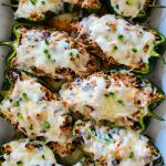 Caramba! Poblano peppers have just the right amount of kick to make this dinner sing . . . bold and savoury stuffing of beef with black beans and rice, delicious tangy spices and – of course – lots of gooey cheese on top.